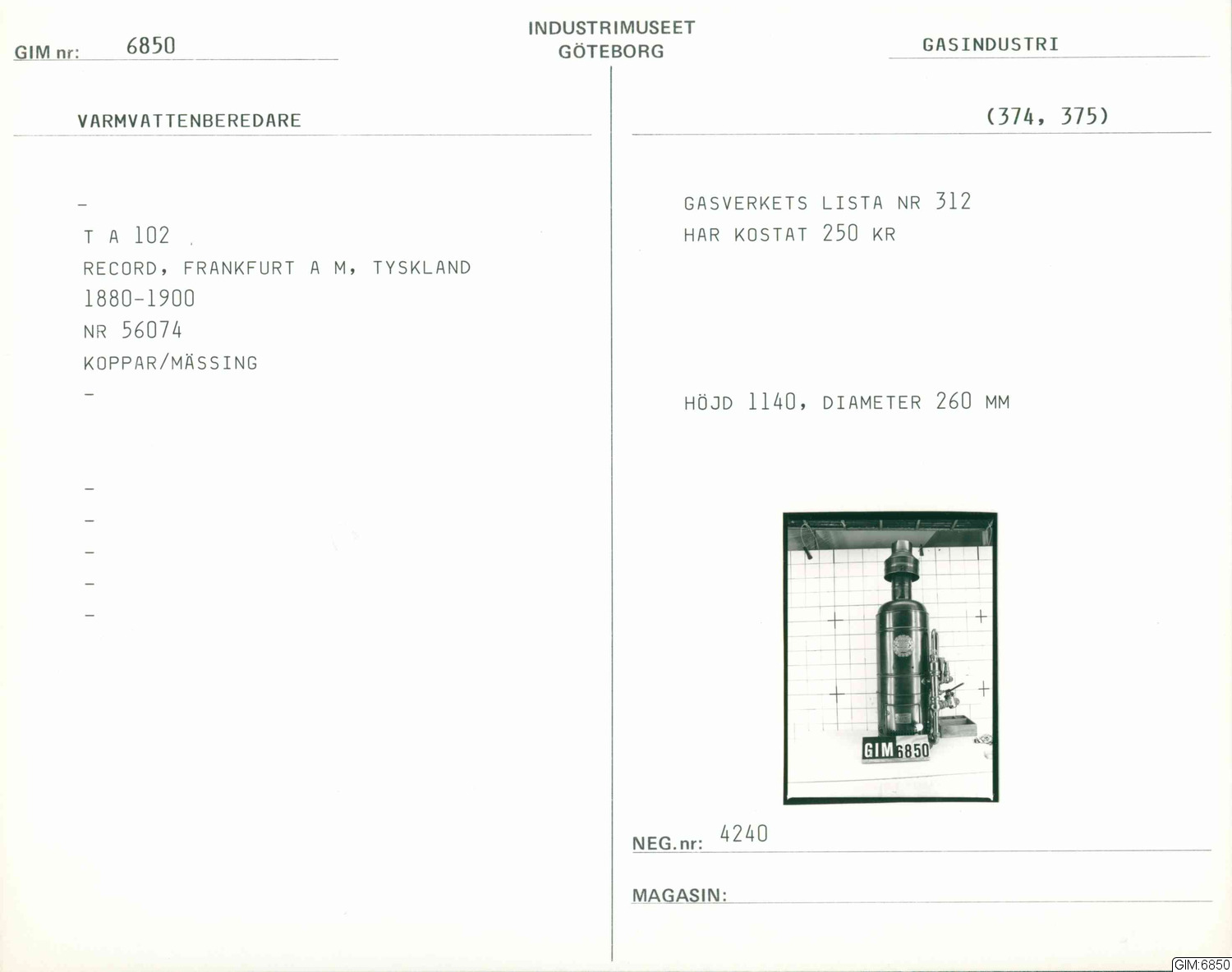 • Gasverkslista nr. 312
