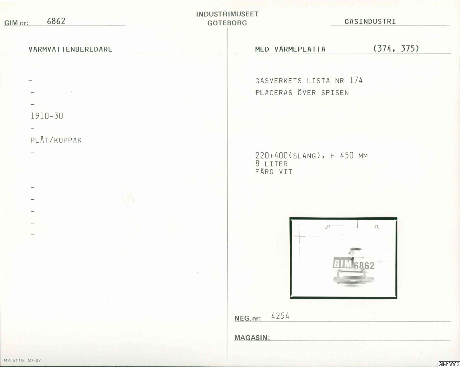 • Gasverkslistan nr. 174
