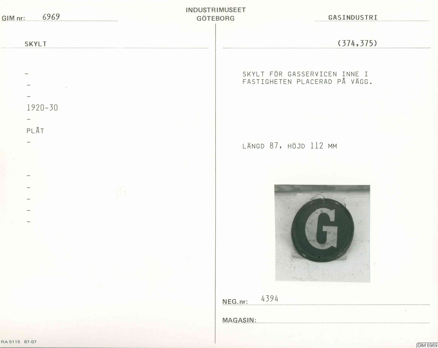 • Skylt för gasservicen inne i fastigheten placerad på vägg.