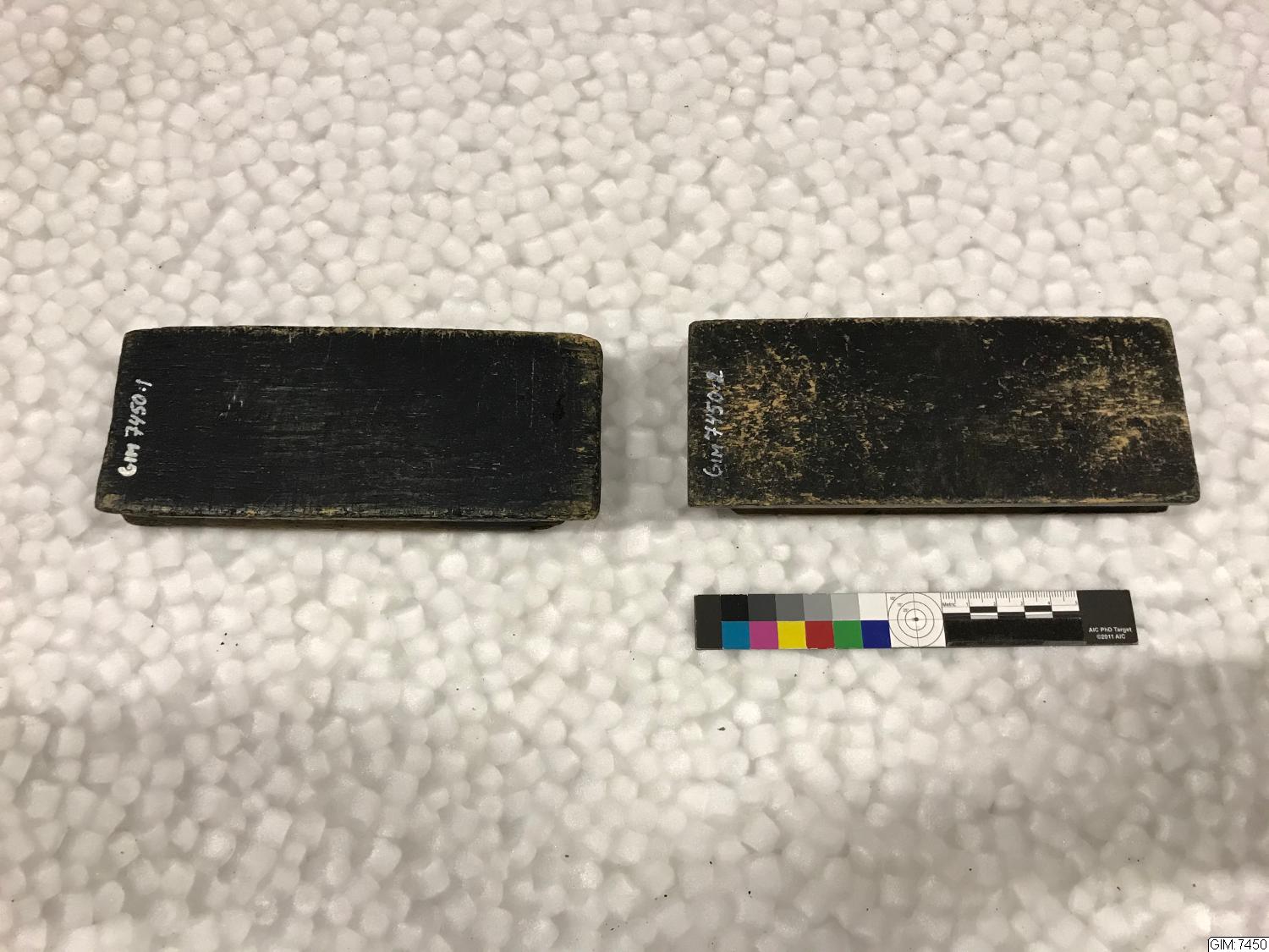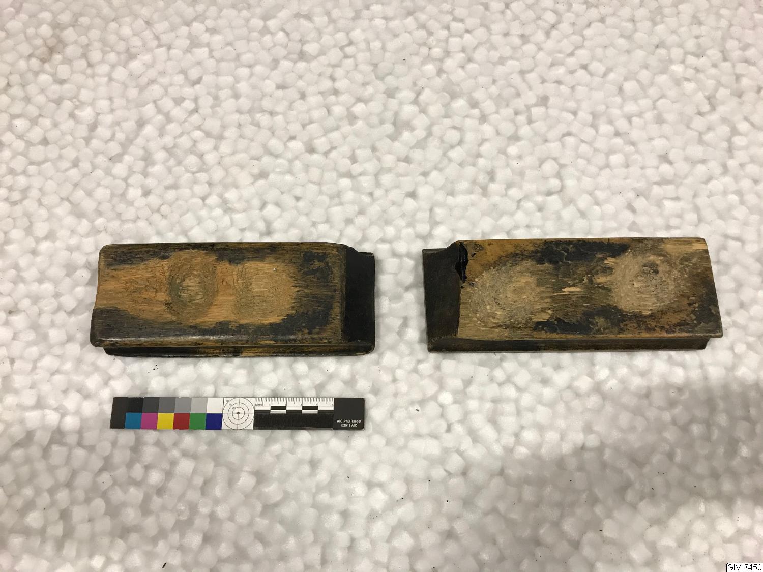 • Träkloss sliten.Man ser urgröpningen där handen har hållit om klossen.