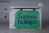 • Grönlackerad metallskylt "Systembolaget", på hängare av smidesjärn, rund metallplatta "guld" märkt SB.