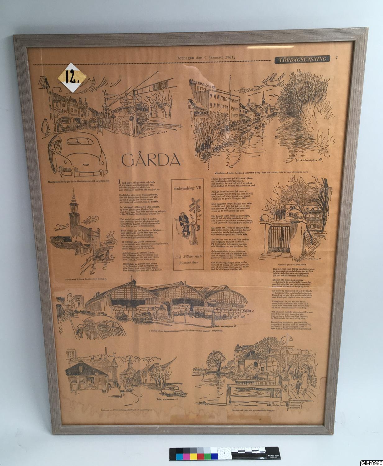 tavla, plansch, stadsvandring, tidningsurklipp, tidning, gårda