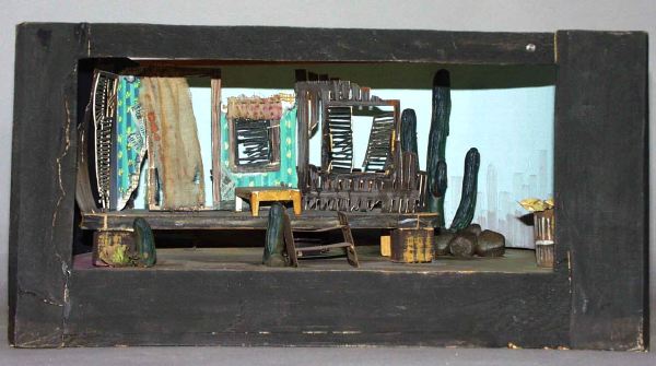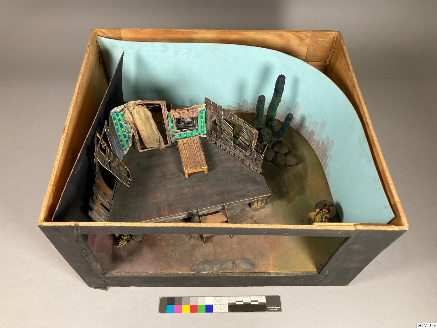 • kakturas och stenar är gjorda av modell-lera, de och de övriga dek delarna av trä och papper är limmade på och mot varandra samt direkt på tittskåpets golv. tittskåpet av trä är utan tak.