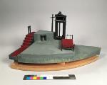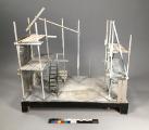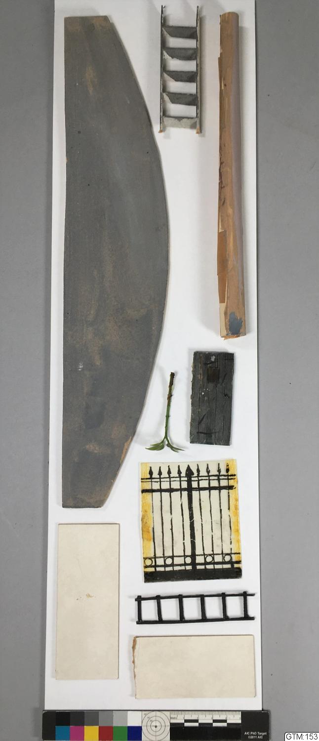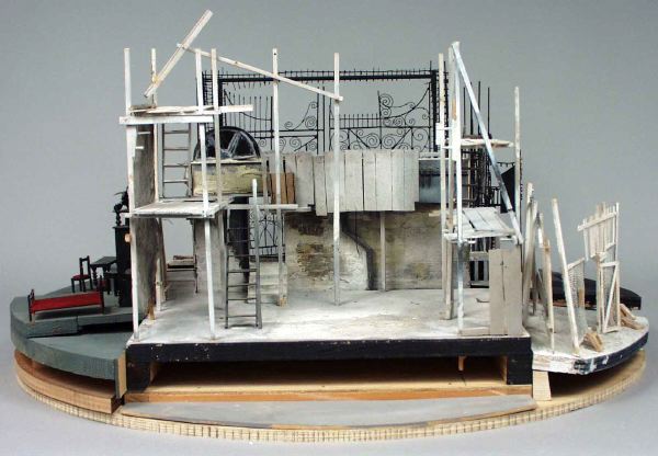 dekoren på modellen är uppbyggd i delbara sektioner som går att sammanfoga och som står löst ovanpå grunplattan av trä, dek delarna är av trä, balsaträ och smide och är limmade och delvis spikade och nerborrade i resp. scengolv.