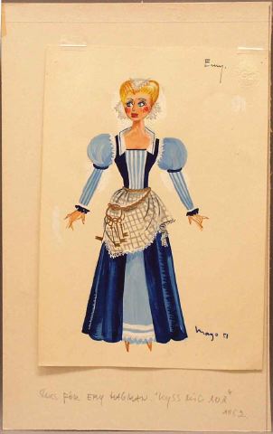 • Emy (med tusch på org) skiss för EMY HAGMAN. "KYSS MIG ADA" 1952 (med blyerts på kartongen)
