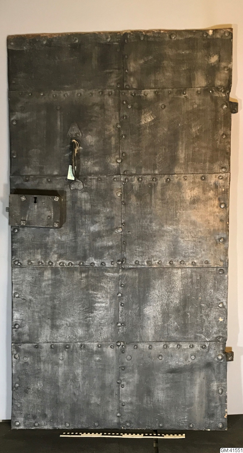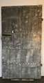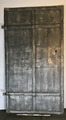 • Äldre dörr av järn. Nitad. Fast handtag.