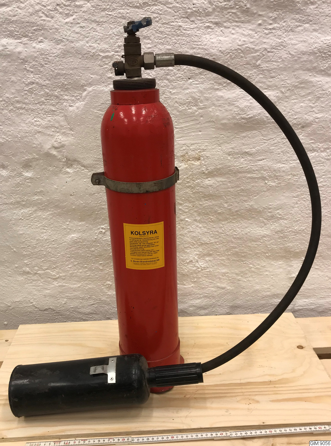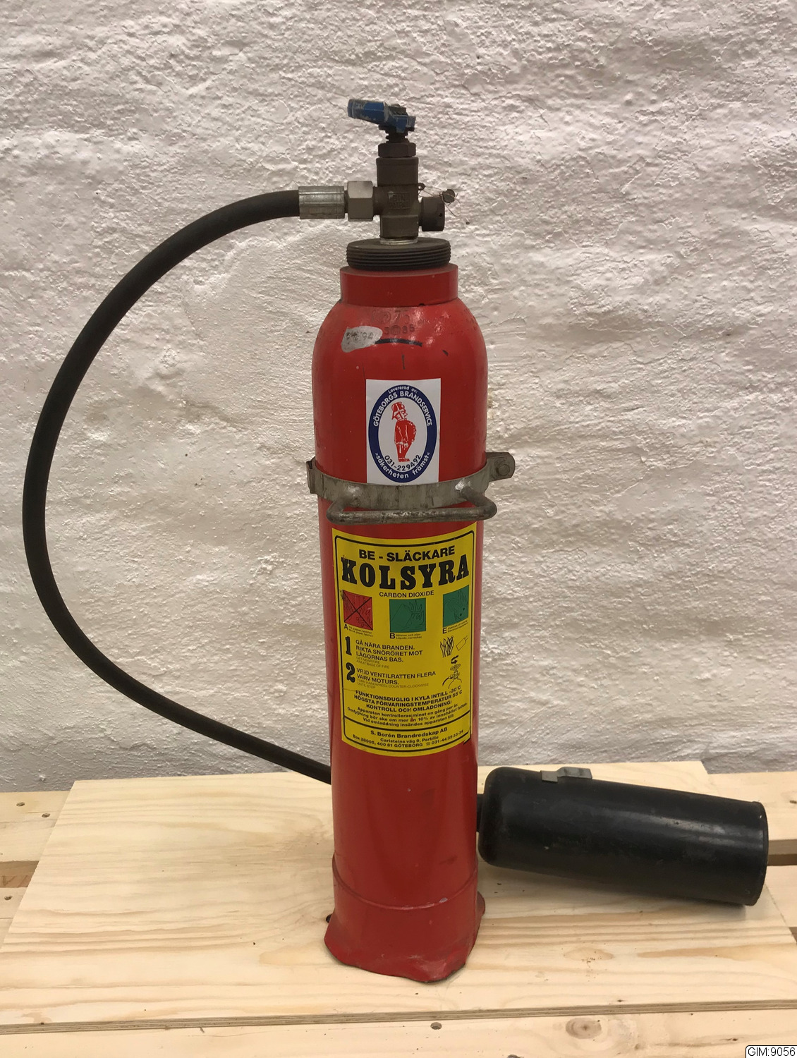• Ev. tillverkad av Tempus Sthllm. Såld av S.Borén Brandredskap AB. BE-släckare med kolsyra.