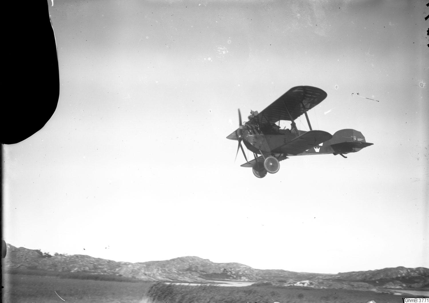 • "Svenska maskiner i flyghamnen. Svenska militärflygförläggningen, tälthangarer och förläggningstält, Phoenix"