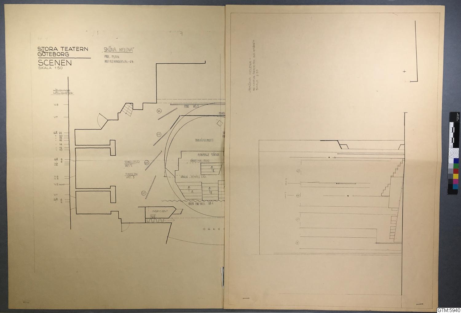 • Uppmättningsritning till Stora Teatern, 'Sköna Helena' 1964