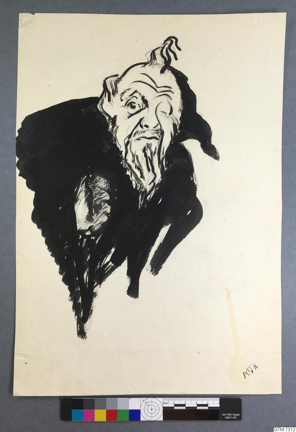 porträtt, skiss, tusch