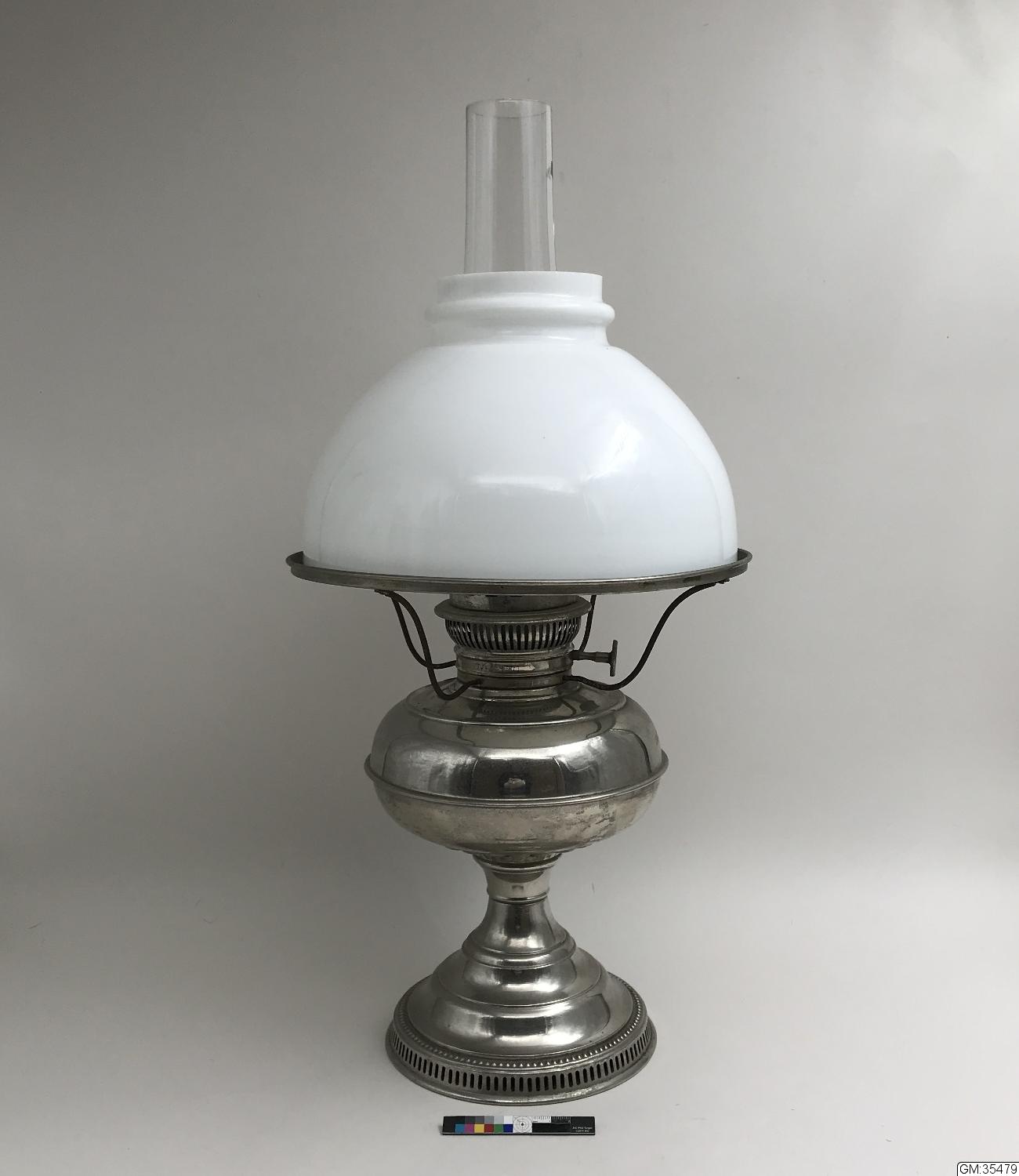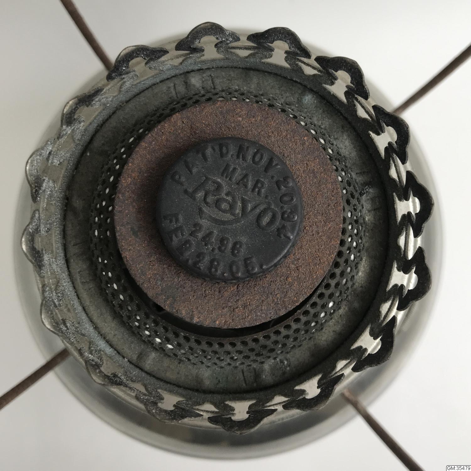 The Rayo Lamp was manufactured by the Bradley & Hubbard Mfg. Co., in Meriden, CT. The flame spreader's first patent is Nov. 30, 1894, then called "Perfection" which were initially made under contract with the Standard Oil Co. One story is you got a free Rayo if you bought 15 gallons of Standard Oil kerosene. The Trademark for the name RAYO remained active under Eastern Standard, Esso, Humble Oil and lastly Exxon Corp. until 1988! B&H began to advertise and sell it to retailers like Montgomery Ward, (they must have paid royalties to Standard Oil for the use of the name). Its sole purpose was to help Standard Oil sell kerosene. Solid brass throughout and nickel plated. In 1911 they were $48.00 dozen with tripod. The Rayo was a round wick central draft lamp as were all the lamp makers, such as Pittsburgh Lamp, Plume & Atwood, Rochester, Edw. Miller, etc. � they were greatly out-performed by the new mantle Aladdins around 1907. These gave 60 watt from a much smaller wick and used half the fuel. The Rayo needs 30 minutes to an hour to REALLY warm up & produce good light, after that the flame can be turned up as high as 2 to 3" � (if you aren't concerned about breaking the chimney)! The Rayo is considered a fuel hog by today's collectors, which likely served the purposes of Standard Oil, its sponsor, quite well!