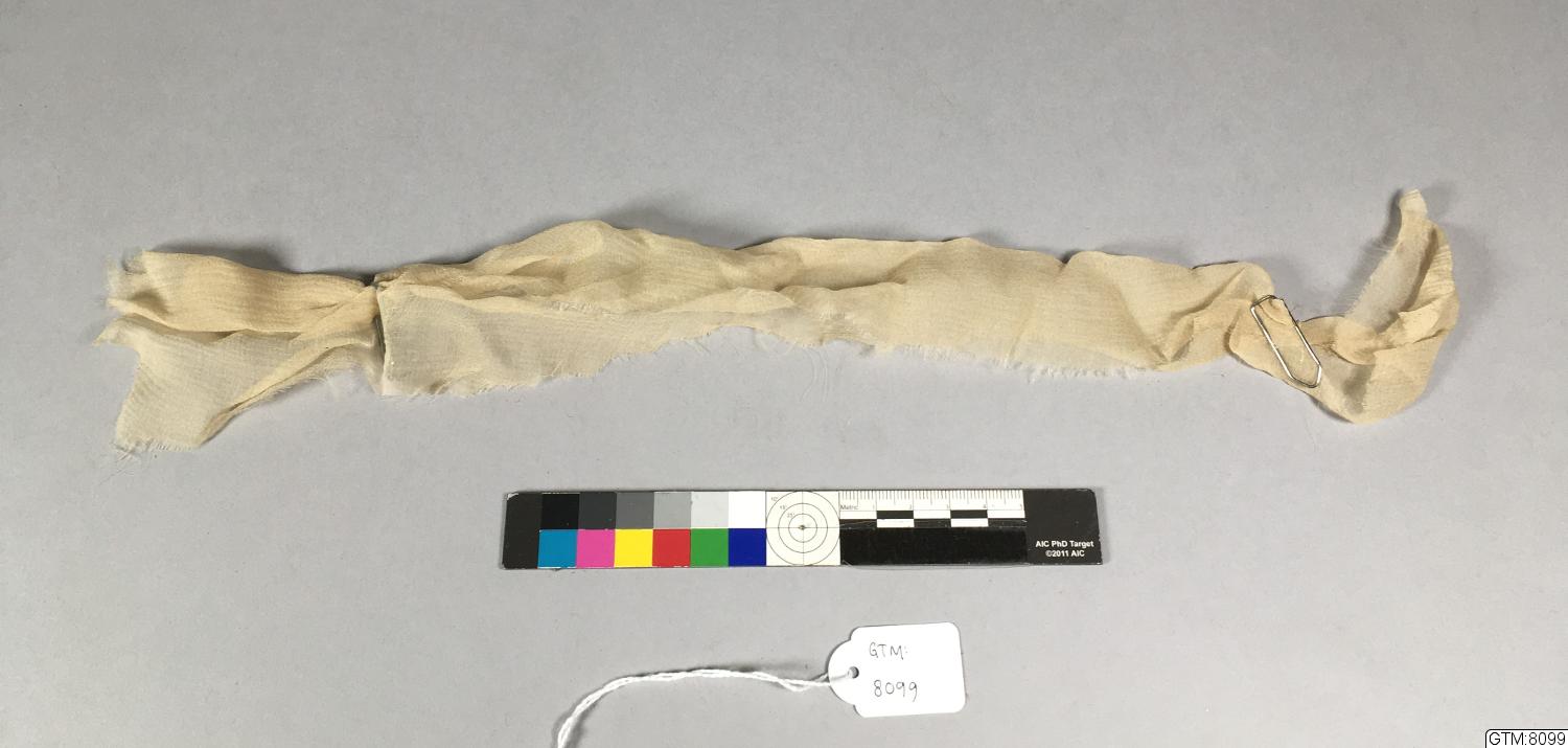 • En dekordel i skirt tyg som varit fästa med två st. gem.
