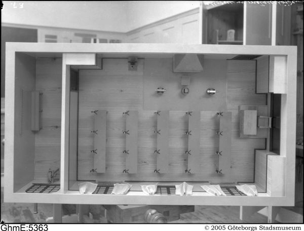 • Jubileumsutställningen 1923. Kommunala avdelningen. III. Skolor: Folkskolor. Rum 136, slöjdsal, modell av en metallslöjdsal.