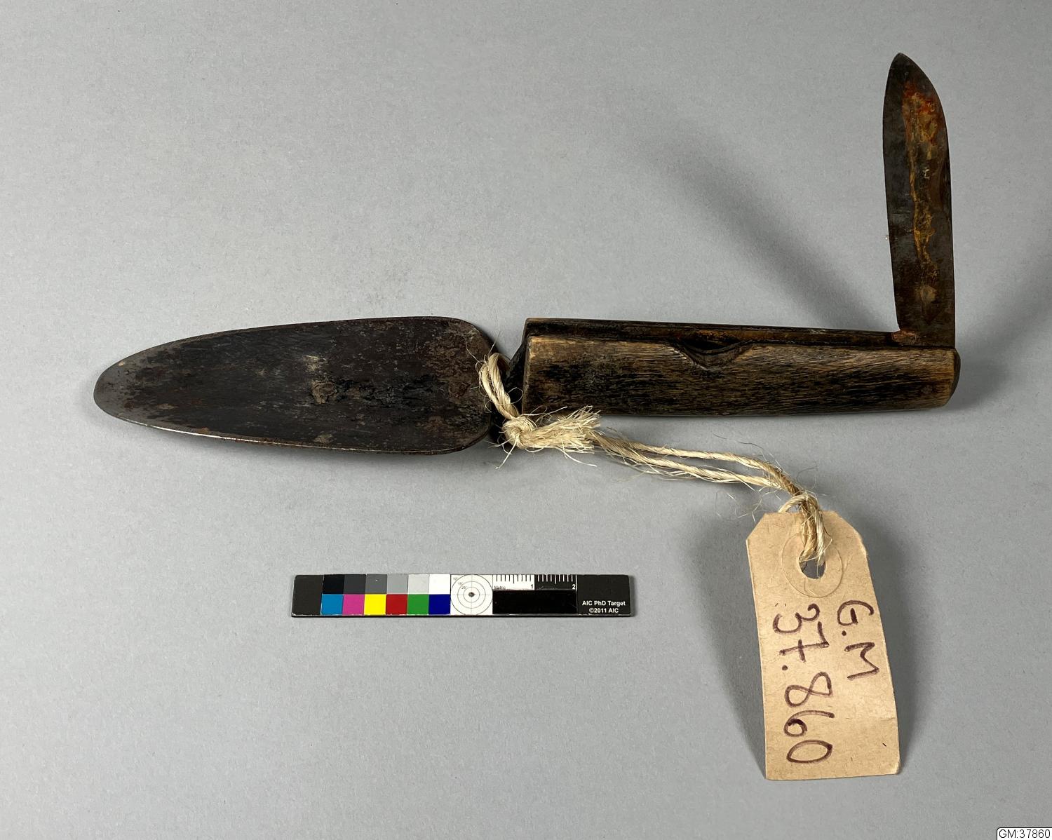 • Botanistspade med fällkniv inbyggd i handtaget.