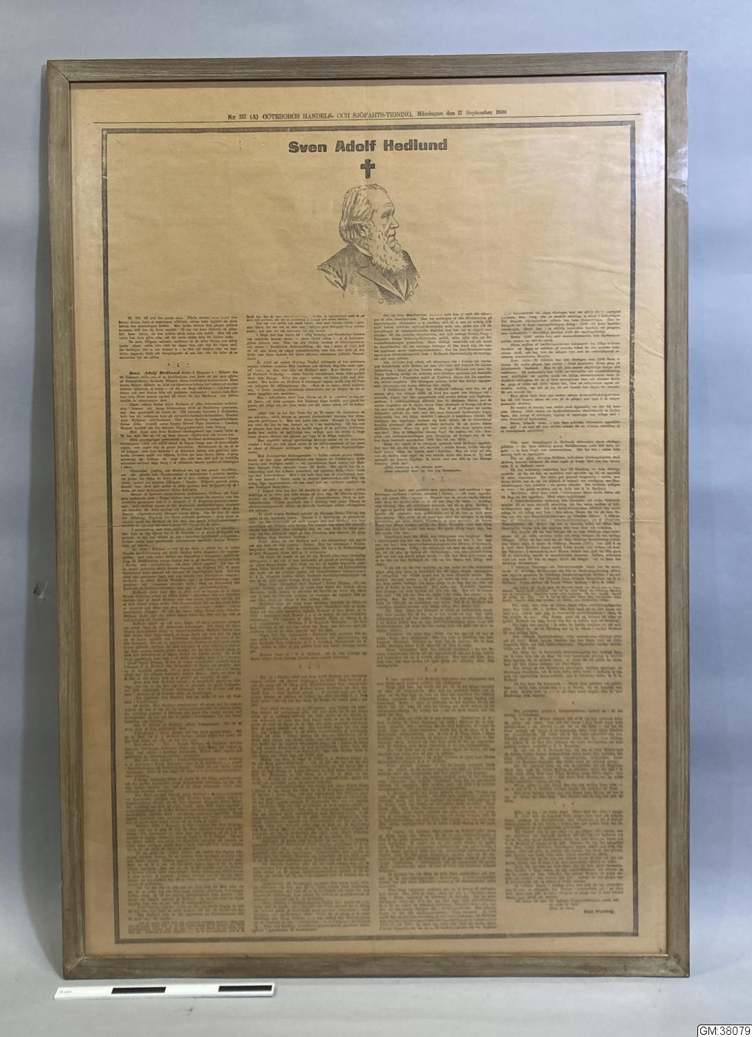 • Tillverkad 1900-09-17 i Göteborg, Sverige av Wilkensons Ramfabrik, Warburg, Karl, 1852-1918, Göteborgs Handels- och Sjöfartstidning.