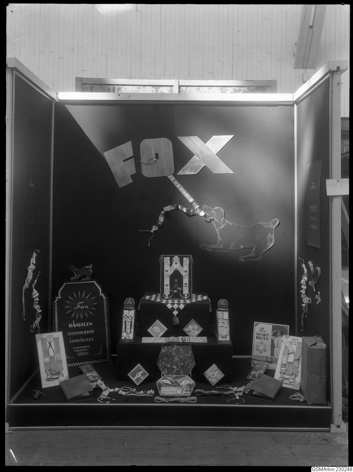• Utställningsdel på Svenska Mässan, FOX monter, med hänglsen och strumpeband med mera.