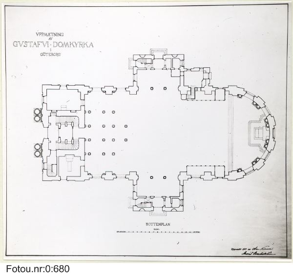 Uppmätning av Gustafvi domkyrka i Göteborg. Bottenplan.