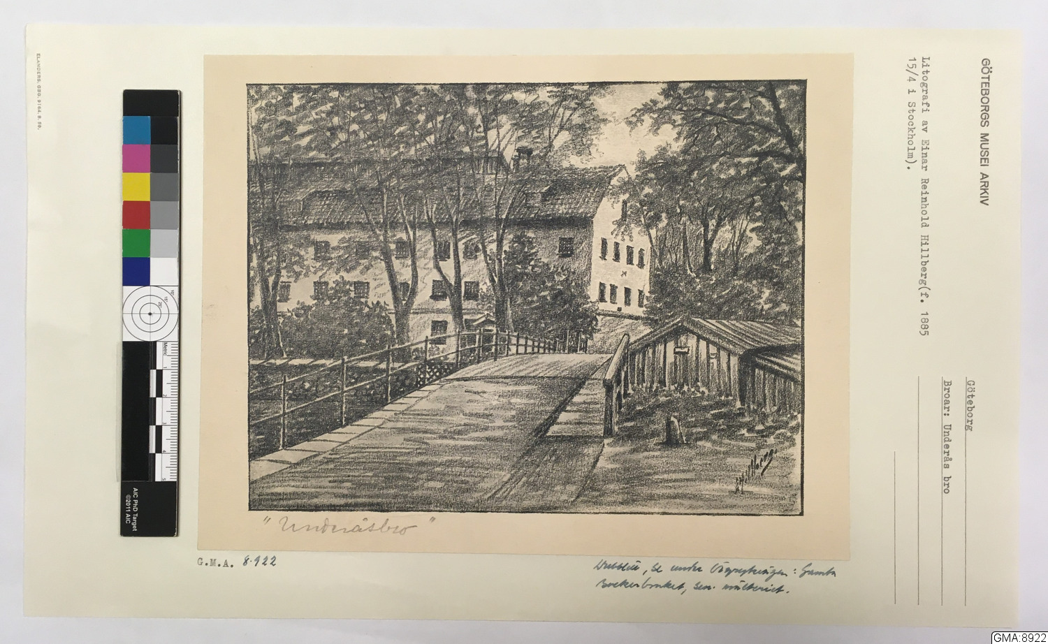 Litografi av Einar Reinhold Hillberg (f. 1885 15/4 i Stockholm). Dubblett, se under Örgrytevägen: Gamla Sockerbruket, sen. [???].