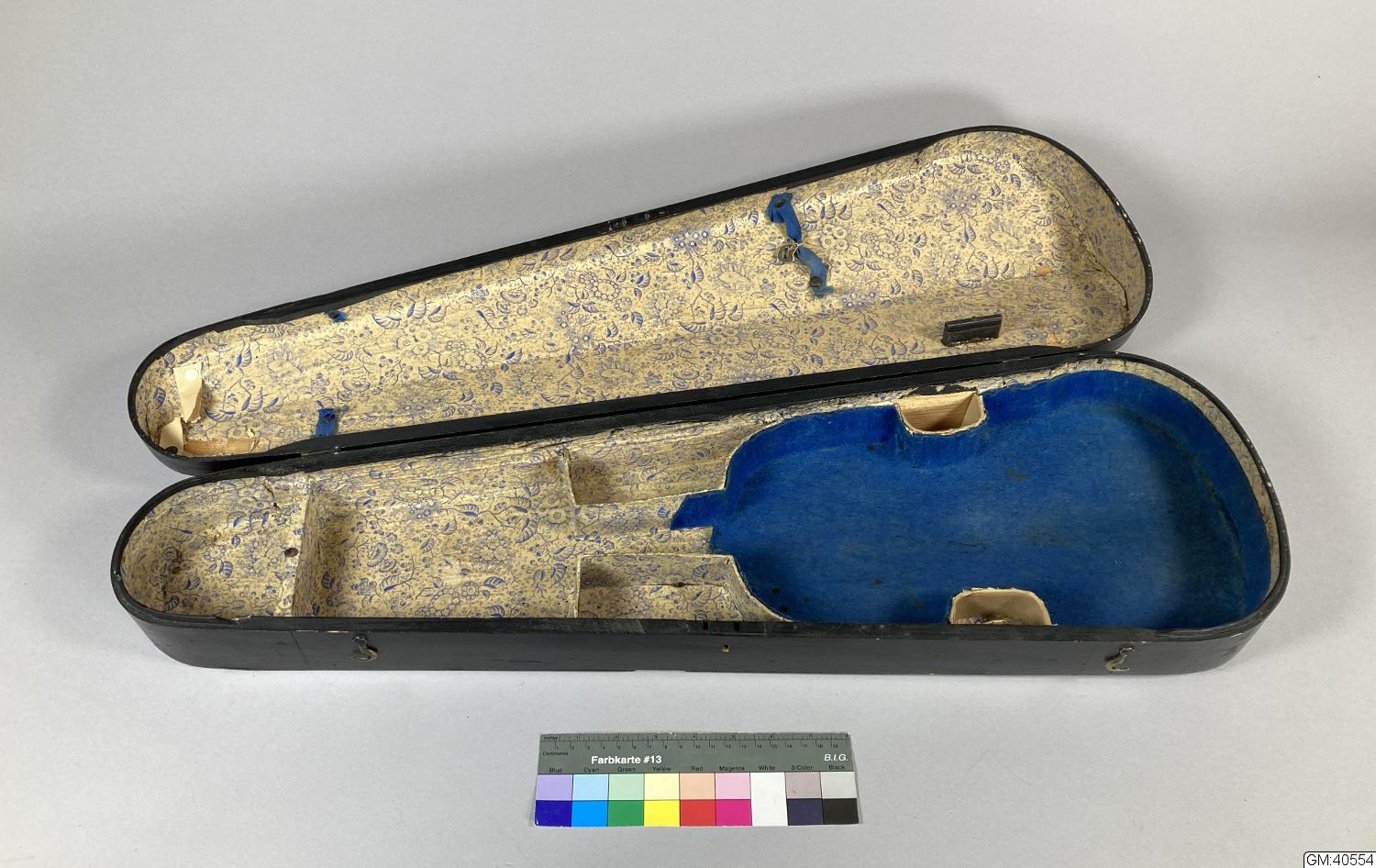Johan Algot Berg var givarens farfar. Han målade altartavlan i Fässbergs kyrka. Spelade fiol ihop med någar "gubbar". Givarens far Algot f. 78 som senare ärvde lådan (med fiol) fick kompa dem på piano; han blev sjöingeniör. Givarens dotter har nu fiolen.