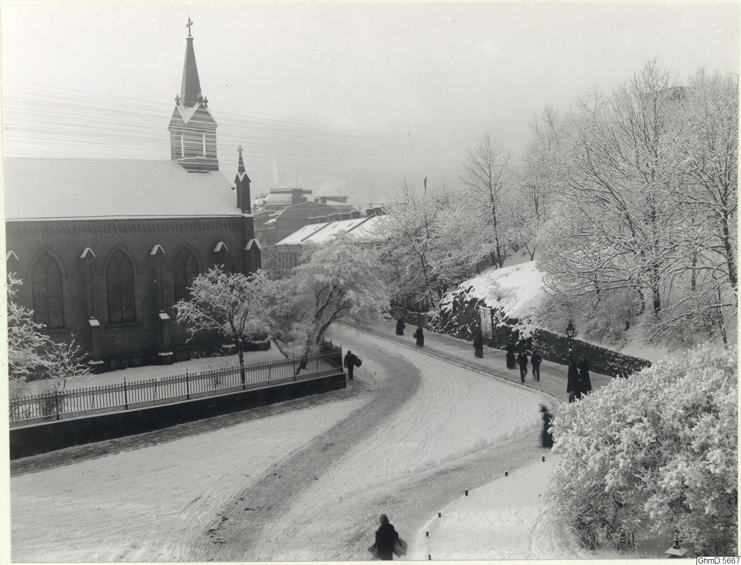 • Hvitfeldtsplatsen och Engelska kyrkan, S:t Andrews church i snö.