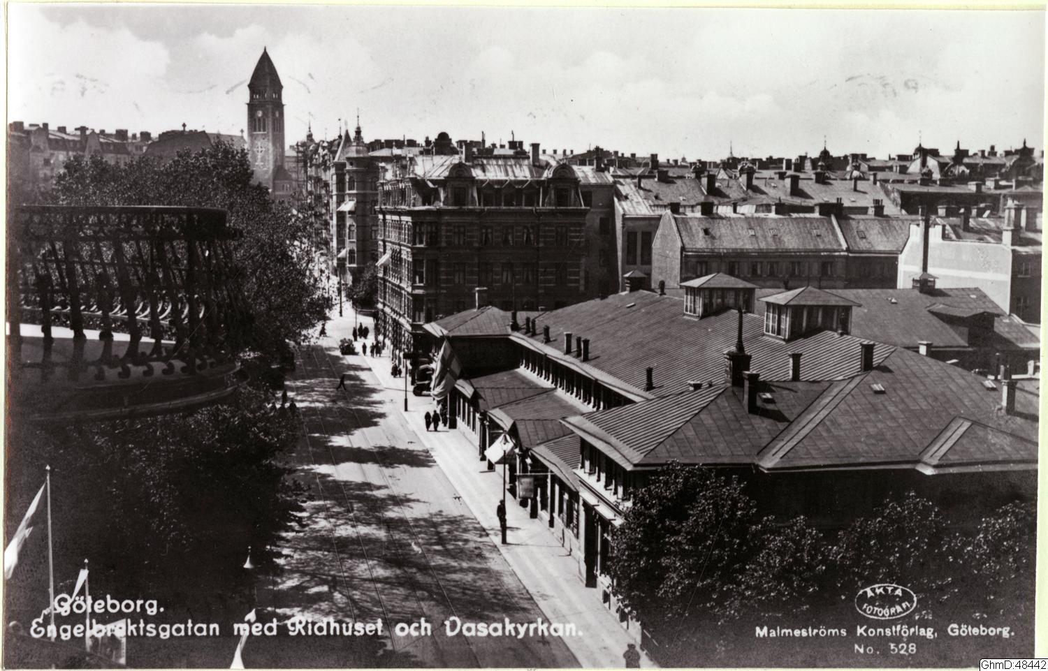 • Sträckningsbild Engelbrektsgatan västerut. Byggnaden på höger sida är Göteborgs Ridhus. Ridhuset med adress Engelbrektsgatan 34 A-C, fanns under åren 1881–1934. Det nya ridhuset öppnades i Bö 1937-10-31