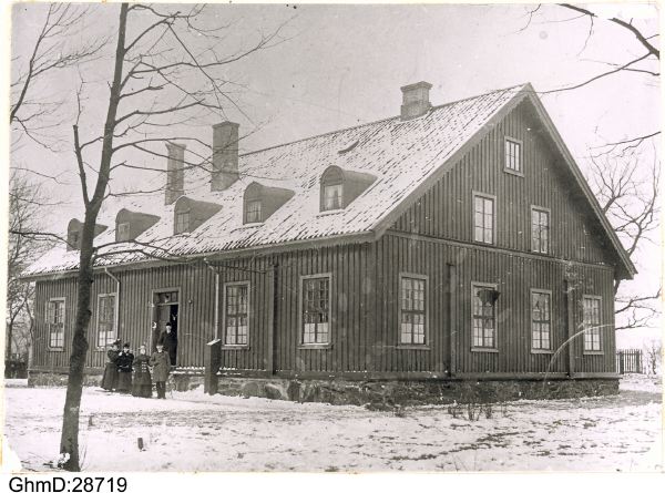 Gamlestadens skolhus (uppfört 1858-59; arkitekt J.A. Strömberg) undervisningen upphörde 1901, då Kvibergsskolan var färdig, med undantag för en småskoleklass som ännu en tid undervisades, till dess att staden fick hyra en småskolelokal å landeriet Marielund, varefter skolstyrelsen år 1904 överlämnade fastigheten till drätselkammaren. - "Foto 1898 ?"