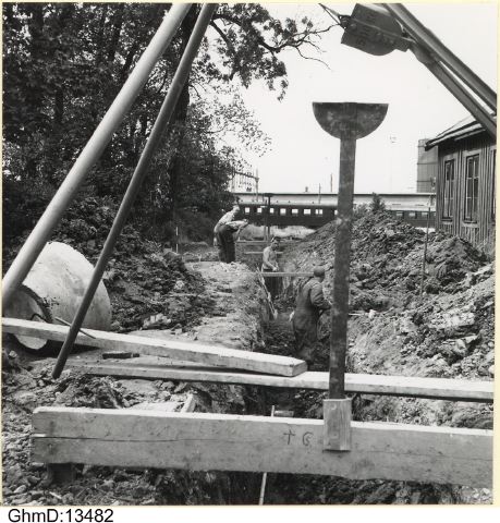 • Från arbetena [med anläggning av parkering] på Garnisonskyrkogården vid Västgöta Lejonet. Vid Svingeln.