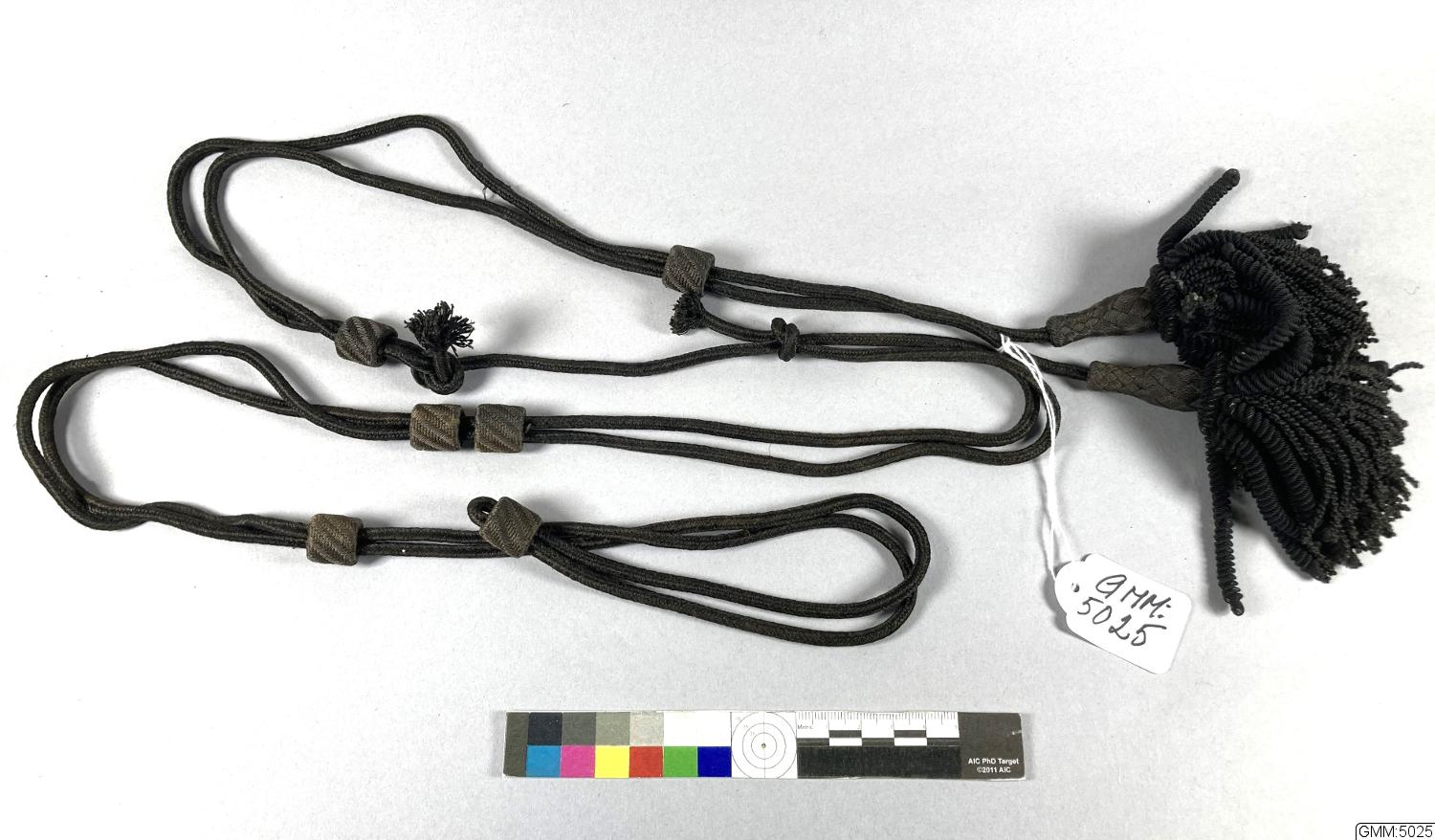 • tofsar till uniform, släpuniform från ca 1860, svarta med buljoner och vanlig tråd silke och annnat material, möjligem bommull
