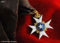 Nordstjärneordens riddartecken i svart band, bandet från senast 1770-talet. Se Lenk, T.: "Linnés Nordstjärna", Livrustkammaren 1941, s. 102, där Lenk redogör för utvecklingen beträffande riddartecknets bärande från 1748-1770-talet, vilken främst består i att bandet från början, närmast riddartecknets bärring, var knutet i en rosett, något som i Frankrike prydde riddarevärdighetens bröstband inom...
