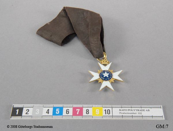 Registrerad i januari 1907 av Carl Lagerberg, efter Brusewitz katalog, föremålet erhöll då nytt nummer: GM:7. Ordenstecknet skänktes till Göteborgs Museum, vilket grundades år 1861, i augusti 1863 av...
