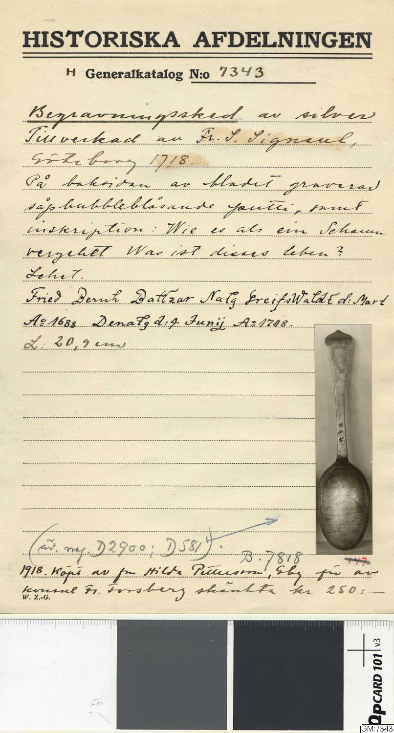 • Tillverkad 1718 i Göteborg, Sverige av Signeul, Friedr. Siegmund.
