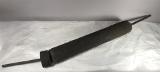 Möjligtvis del av en vridmaskin eller läderpress, ett garveriredskap ämnat att pressa ur fukt ur berett skinn. En rulle av trä klädd i papp och tidningspapper. Ett av tidningspappren med vilken rullen klätts är Malmötidningen 1896-01-24. På ena änden ett kugghjul. Jfr H:1835 - del till?