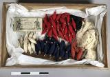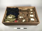 • Omärkt låda med omärkt innehåll bestående av garner. Från snörmakeriverkstad - sannolikt Axel Olssons snörmakeriverkstad.