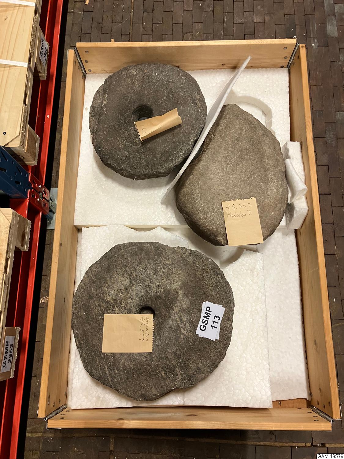 • malsten i två delar den ena med genomborrat hål den andra med en fördjupning