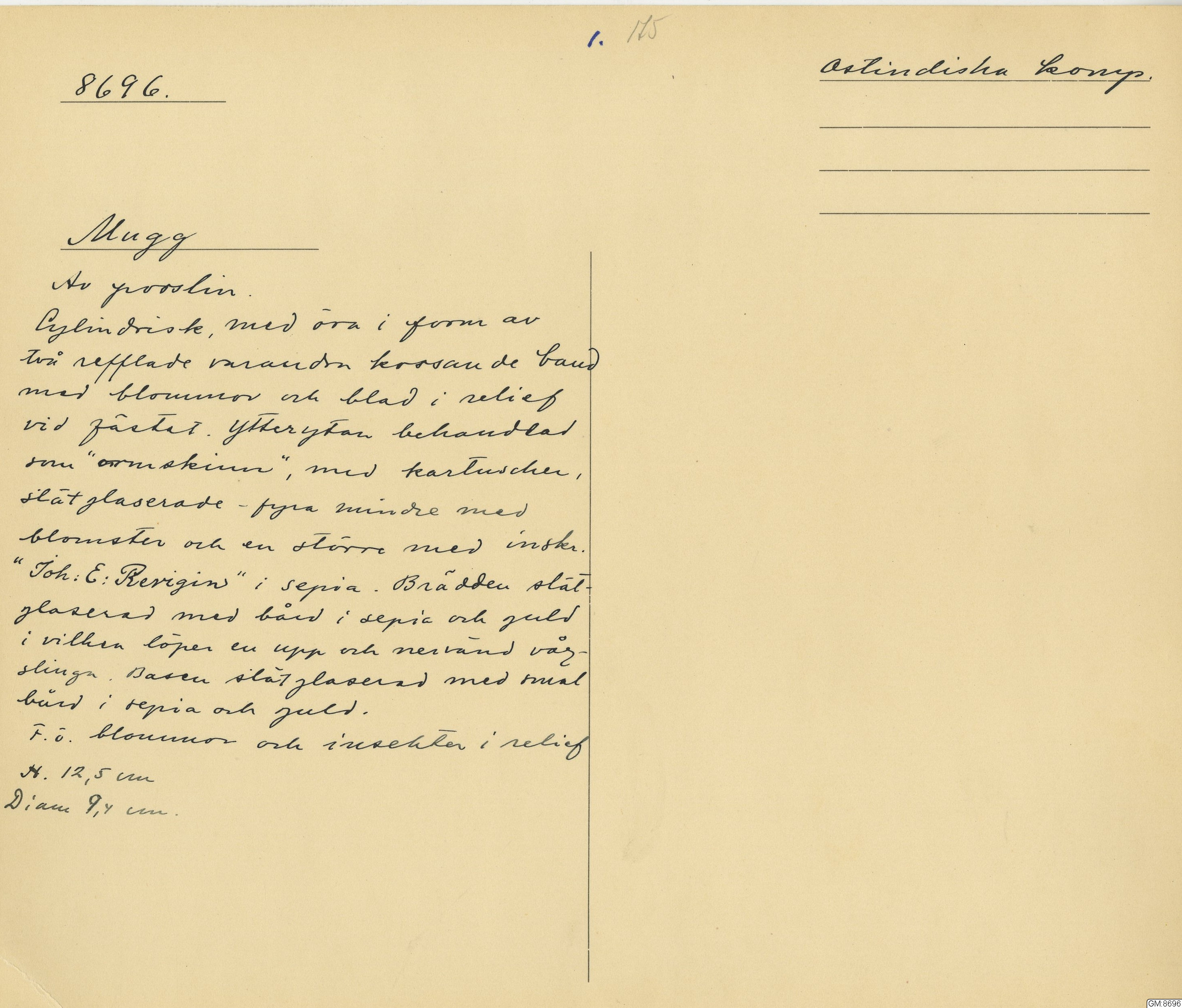 • Förvärvad 1926 i Göteborg, Sverige av Nordiska Antikvitets AB.