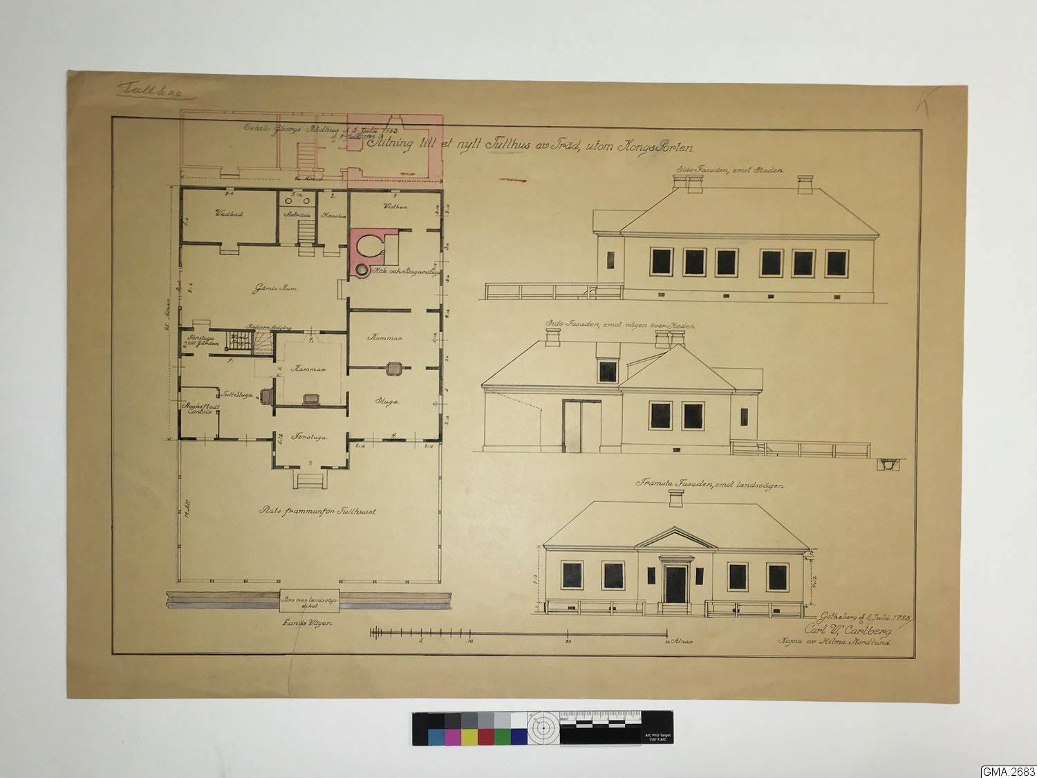 • Ritning till et Tullhus av Träd, utom Kongs Porten. Kopia efter ritning av Carl W. Carlberg.