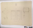 Uppmätningsritningar, a) situationsplan med planer av 2 gårdar ( 2 manbyggnader och 2 ladugårdar), b) planer av botten- och vindsvåning i Hanssons gård, c) trappräcke och gångjärnsbeslag i Hanssons gård, d) förstukvist i Karlssons gård, e) kakelugn, f) dörr, g) skåp, h) båda gårdarna, tuschteckning.