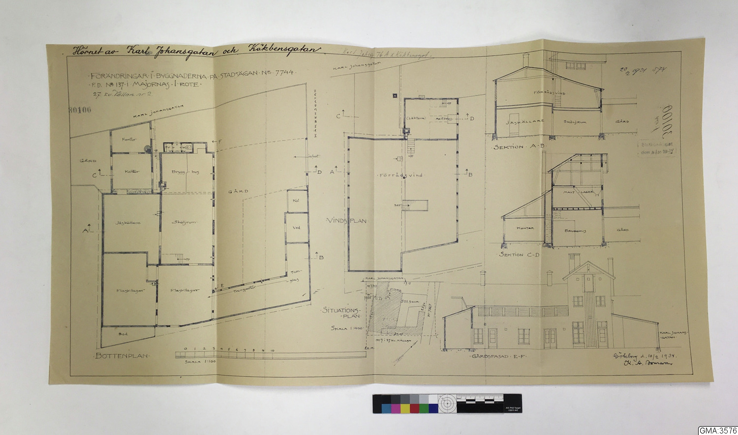 Byggnadsritning, kopia, till förändringar i byggnaderna på stadsägan nr. 7744 (f. d. tomt för Maj. 1 rote, nr. 137 Karl-Johansgatan 76 A x Käkbensgatan).