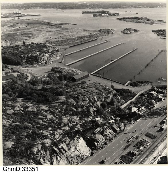 Flygbild över bergspartiet med redutten efter avslutad undersökning. I bakgrunden Aspholmarna, Nya Älvsborgs fästning och Billingen. Från Nordväst. neg. rtol. fr. film 5