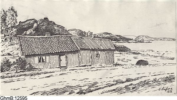 • Torp vid delsjön. Fotostatkopia efter teckning. I privat ägo 1973.