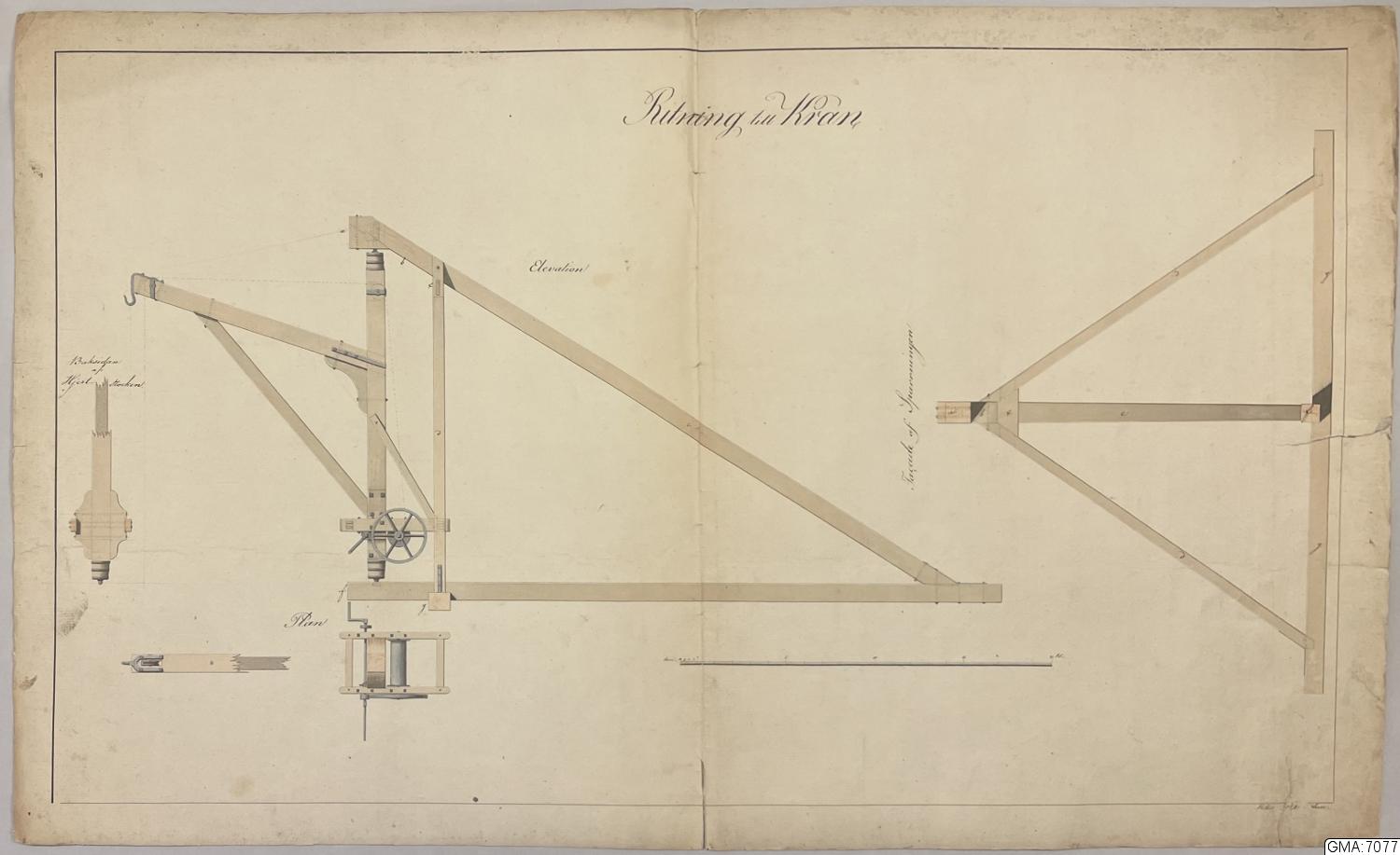 ritningar (tusch-, laverade tusch-): "Ritning till Kran", 2Ritning öfver medlersta delen af Kämpe- och Tyska Bryggorne i Götheborg (sign. J. Hagberg 12 mars 1827) samt av diverse annan vattenbyggnad". Ritningarna, med undantag av denförstnämnda, sammanfogade till ett häfte. (Överlämnat till Hamnkontoret. Ritning till Kvarn + Ritning till mudderverk deponerade i Sjöfartsmuseet Göteborg. Se kvitto d...Visa hela