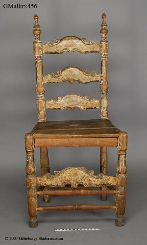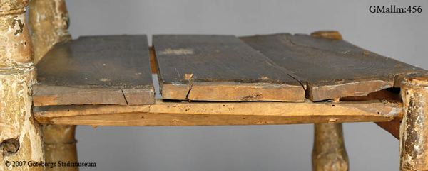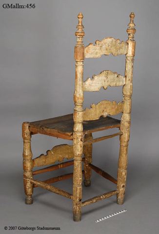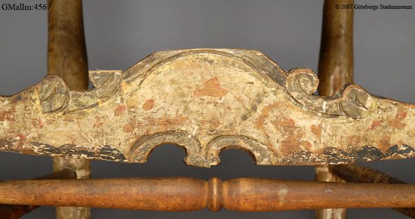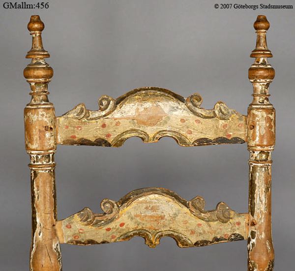 Brusewitz skriver" Två äldre stolar sammanslagna till en." "Båda defekta i hög grad, dock så, att hvad som felades å den ena, fanns hos den andra, hvadan jag 1882 lät reducera båda stolarne till en enda, denna fullständig."