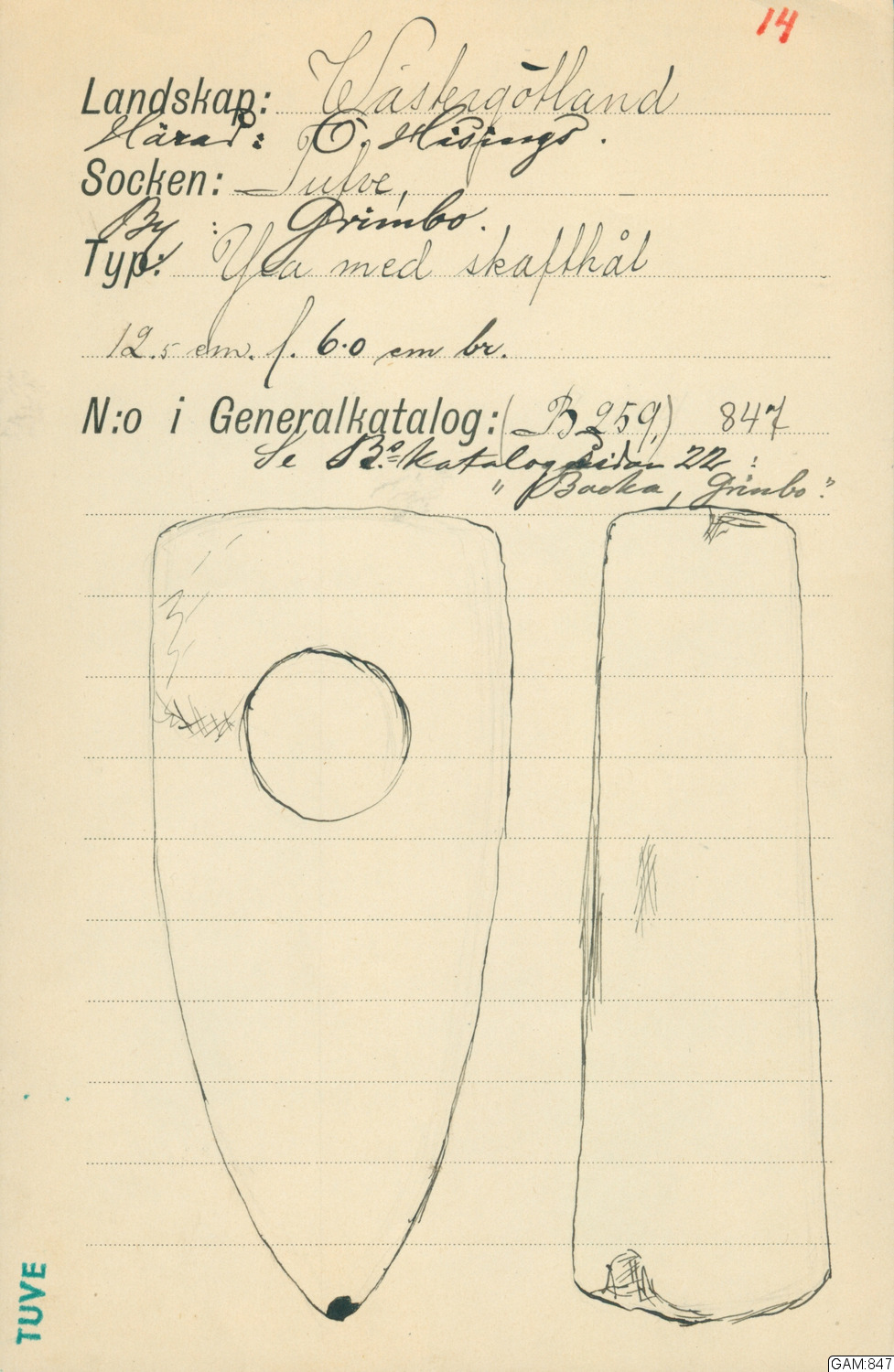• Hittad i Grimbo, Tuve, Västergötland, Sverige.