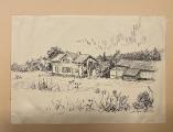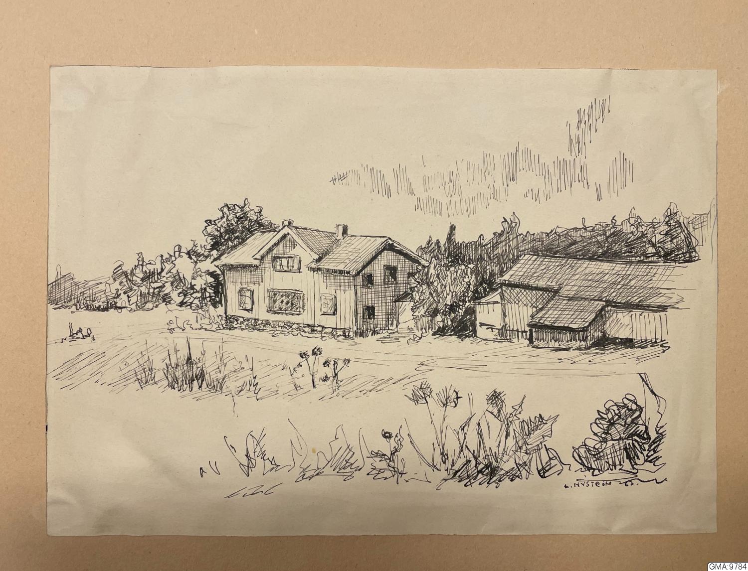 • tuschteckning, 17 x 24 cm, av Lars Nyström 1963: Johan Olssons gård, Arendal.