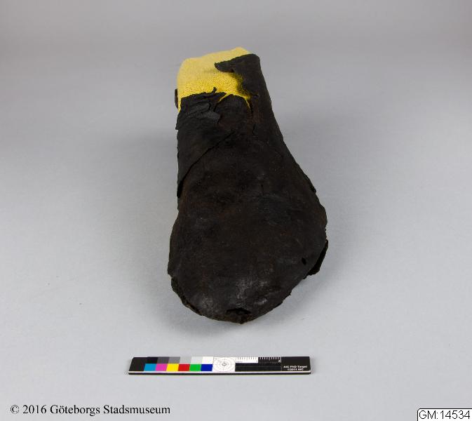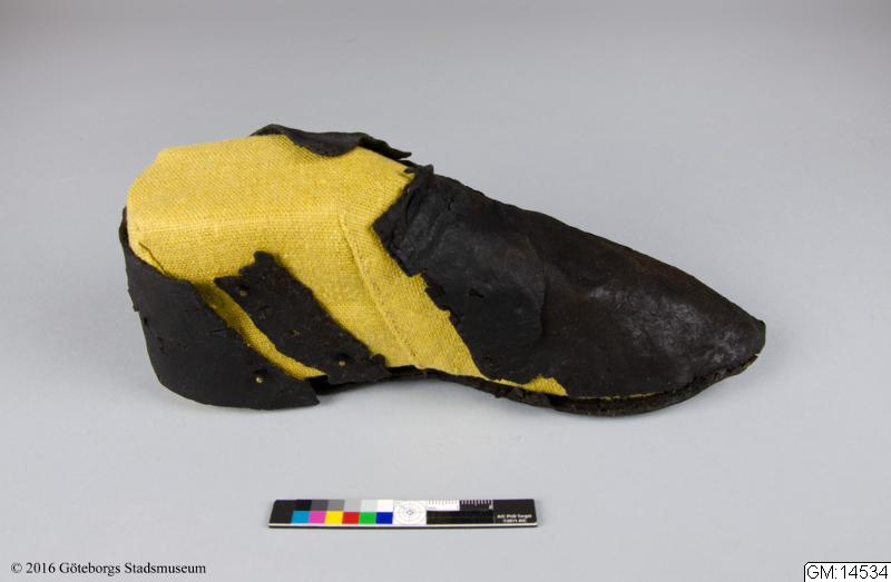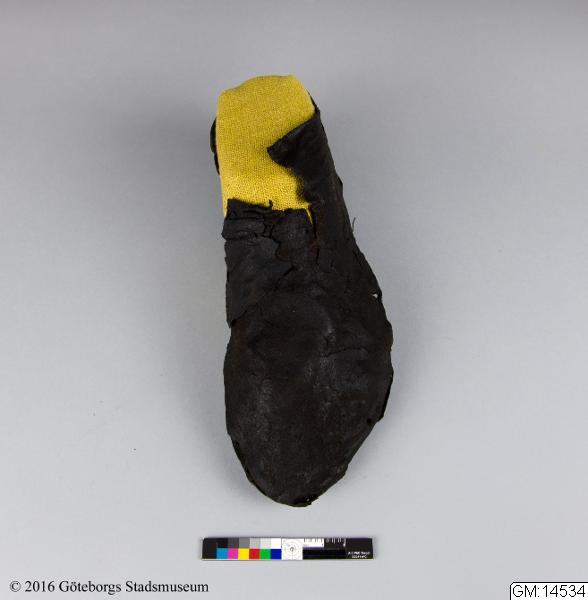 • En sko av skinn. Fynd från Lödöse.