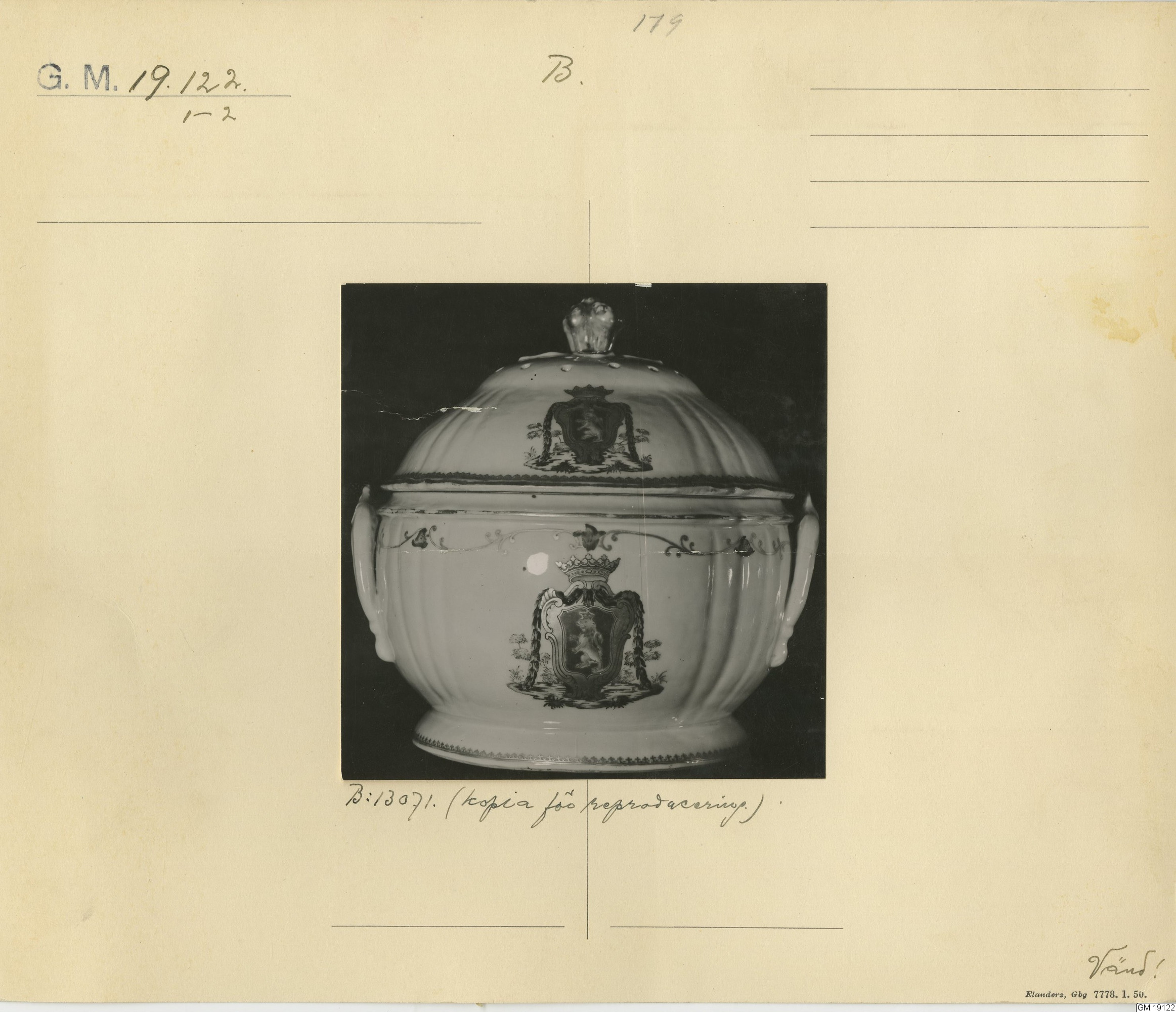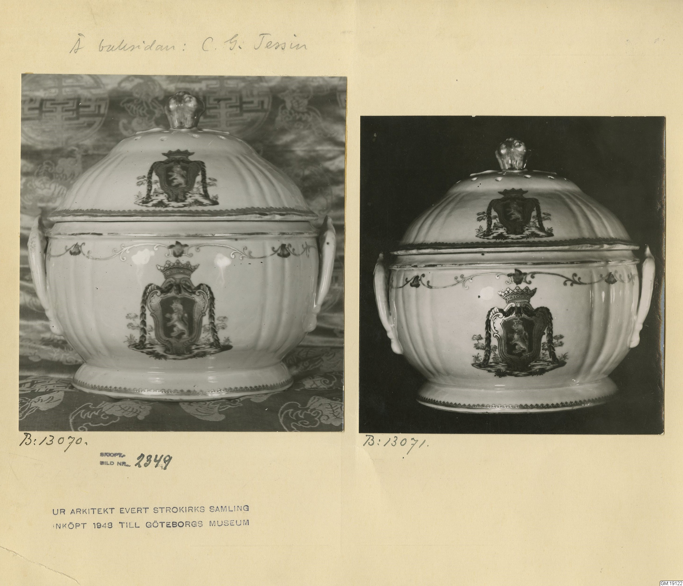 Ur Evert Strokirks samling GM 19122-19 347 utgör en samling ostindiskt porslin, försedd med olika svenska adelsfamiljers vapen och förvärvad i ett sammanhang.Samlingen hopbragt av arkitekten Evert Str...