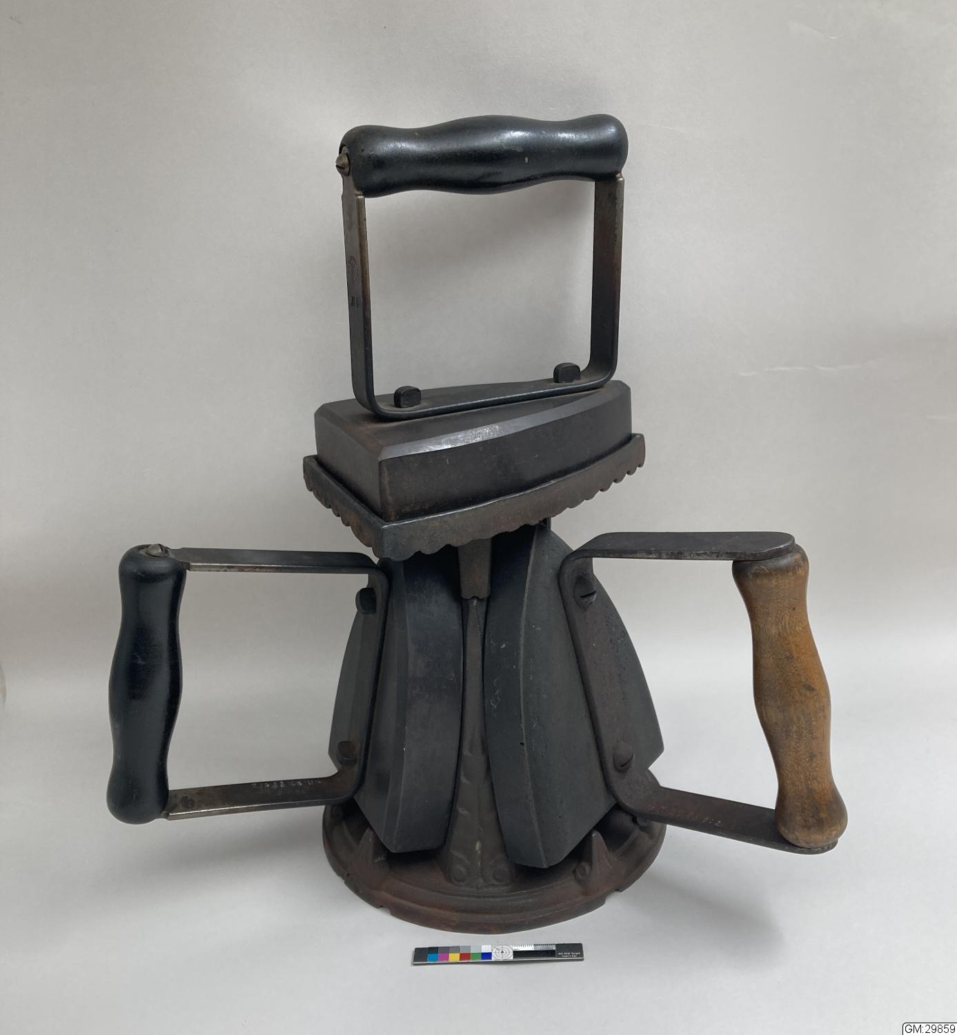• Ett strykjärnsställ med tre strykjärn
