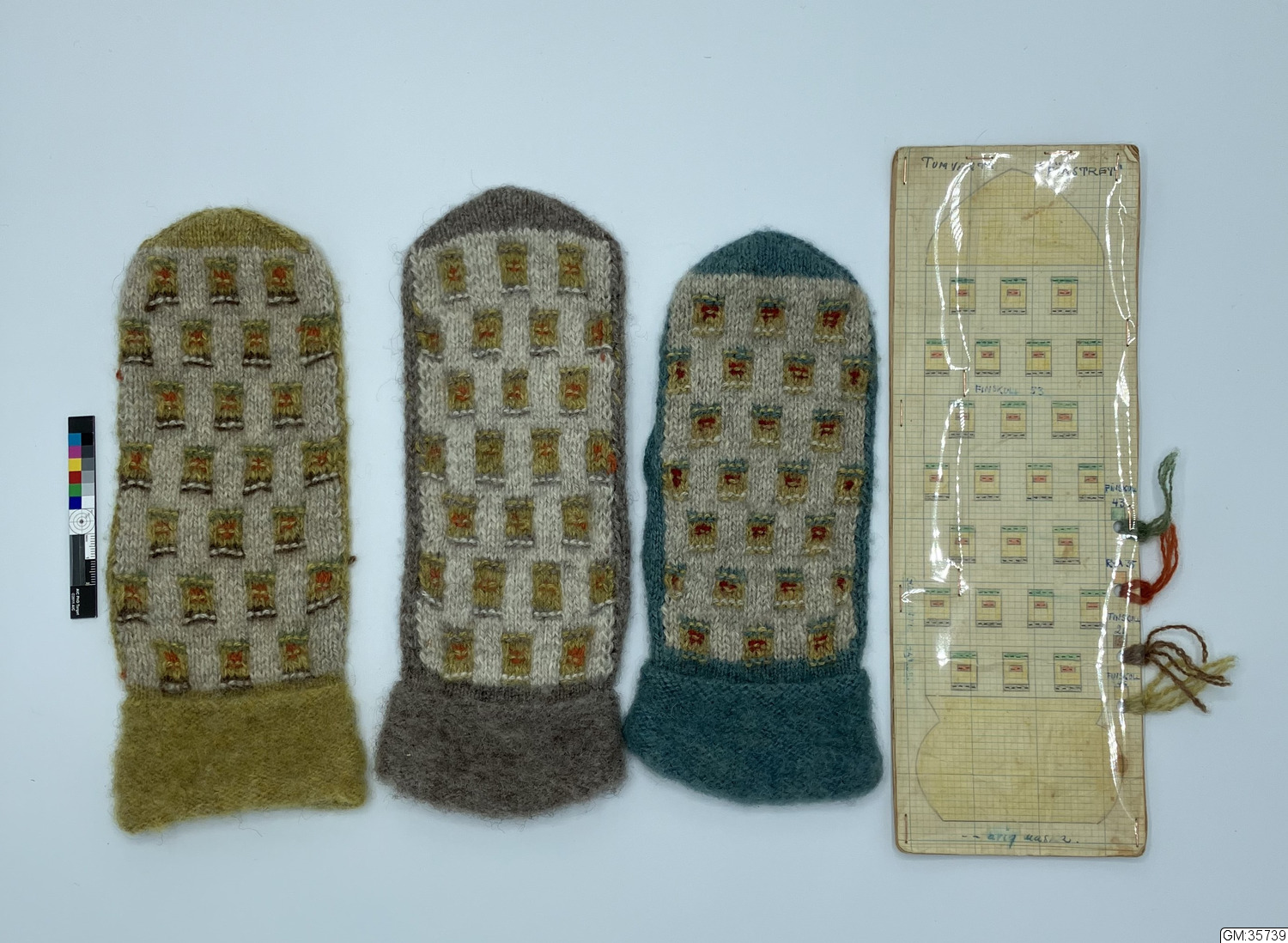 • Arbetsritning samt tre provstickade vantar i bohusstickning.