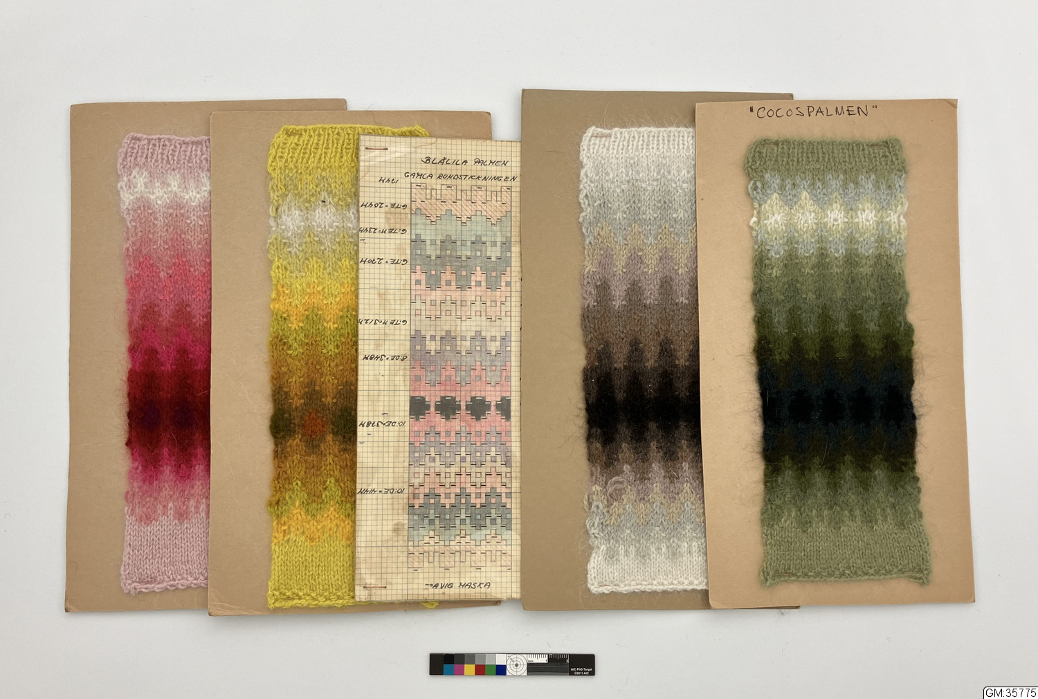 • 4 stickningsprov och 1 arbetsritningar från Bohus stickning.