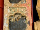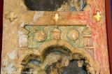 Delar av Mariaskåp i trä: a&b=dörr; c&d=list, längre; e=list, kortare; f= bladornament g=bladornament, fragment. Dörrar: Skurna i ett stycke som överst avslutas i en trefasad rundbåge. Tre ansluta...
